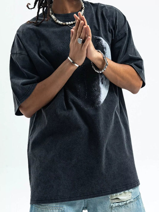 Men's Moon Round Neck Half Sleeve T-Shirt