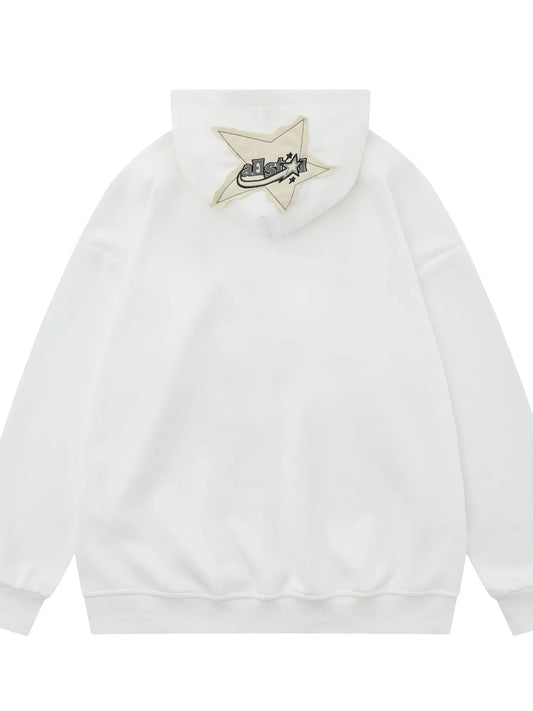 Men's Star Patch Oversized Hoodie with Snap Detail