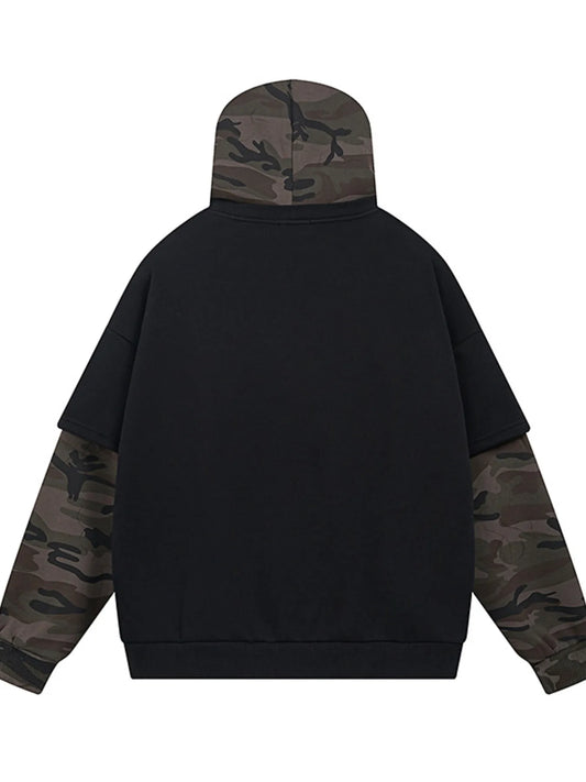 Men's Oversized Number 24 Hoodie with Camo Contrast Sleeves